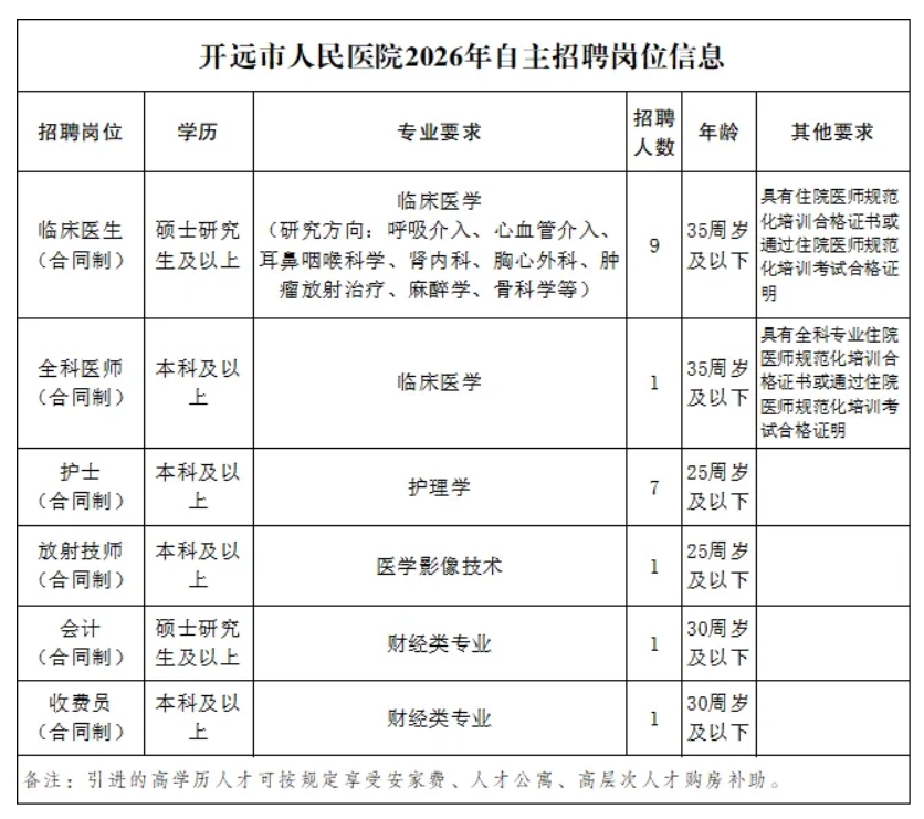 本文来源:开远市人民医院2026年第一批次自主招聘公告